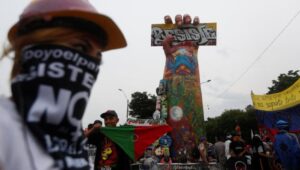 El Monumento a la Resistencia, en Puerto Resistencia, se levanta como un símbolo de lucha y resistencia popular. En su puño cerrado se concentran los rostros de las víctimas y los símbolos de la lucha.